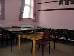 On going upstairs, the door to the immediate left leads into what is known as an Ante Room. This room is used by the Members for sorting out their Regalia, signing the Attendance Book and socialising before going into the Lodge Room for the formal meeting. |