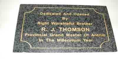 There are currently seven Masonic Lodges or Craft Lodges using this Room. Prior to the extension it was also used by three Royal Arch Chapters hence the various Veils (or curtains). The Room has a certain atmosphere about it perhaps because of the old and antique Chairs and the various Warrants etc. which hang on the Walls. Each Lodge has its own Warrant, issued by the Grand Lodge of Ireland. Lodge Meetings are held in a formal manner, exactly the same as in other Organisations. We do have one particular and very strong rule in the Order and that is that there must never be any talk or discussion on Religion or Politics, all we ask of a Member is that he has a belief in the Supreme Being. This Lodge Room will in due course be renovated, e.g. the heating system modernised, painting, etc. but it is hoped to maintain the atmosphere of the Room.