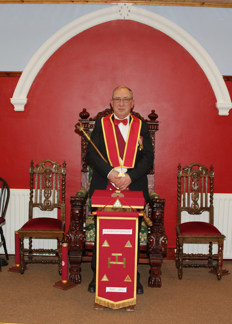 CARRICKFERGUS RAC�S PRESENT CHEQUE TO THE DGK�S CHARITY FUND. On St Andrew�s night 30th November 2011 E.C Roy Whiteside RAC No. 253 presented a cheque to RE District Grand Registrar RE Companion WJ Lynch. The proceeds were raised by the three Chapters at Carrickfergus Masonic Centre Carrickfergus 253, Chichester 313 and St. Andrew�s 1012.